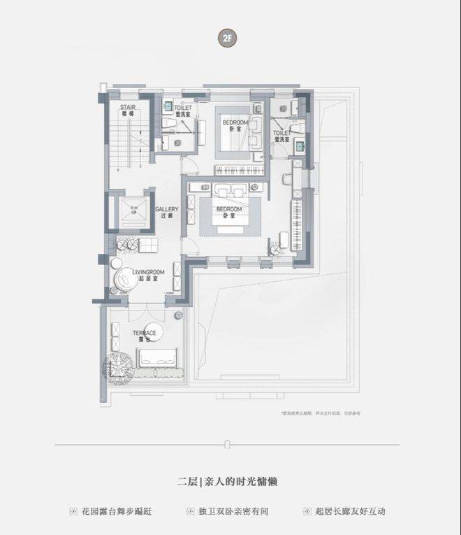 一层长辈套房设计,南向独立小庭院,莳花弄草,晨练太极自在四季