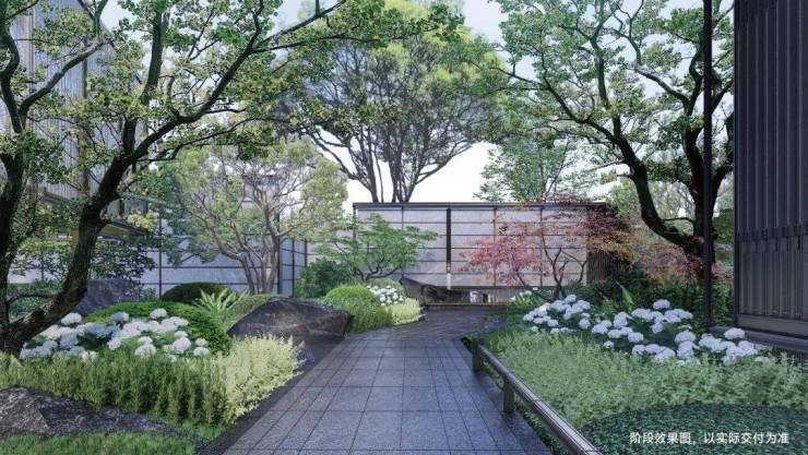 倾力打造超大的中庭景观花园,并采用多样化的景观设计,实现移步换景的效果。这样的设计不仅增添了归家的诗意氛围,同时也提高了整体居住品质。