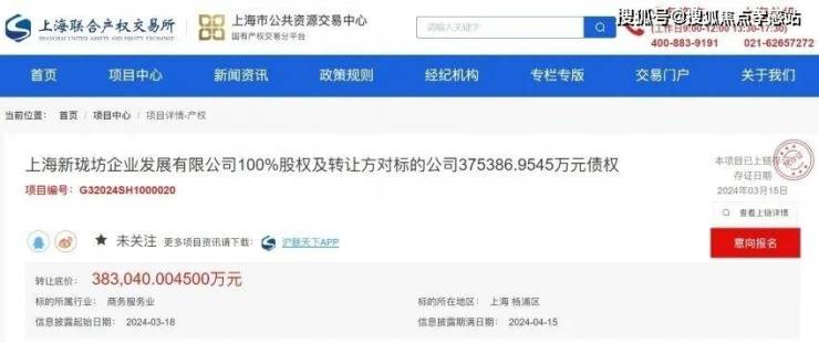 3月15日,上海联合产权交易所官网发布信息,上海新珑坊企业发展有限公司100%股权及转让方对标的公司375386.9545万元债权正式挂牌转让,其中转让方上海新珑坊企业发展有限公司由上海杨浦城市更新建设发展有限公司(下称“杨浦城更”)100%控股,杨浦成更所属集团为上海地产(集团)有限公司。