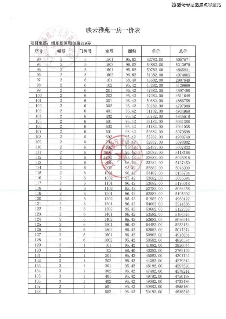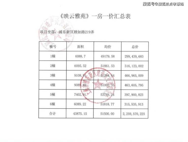 项目一房一价表▼
