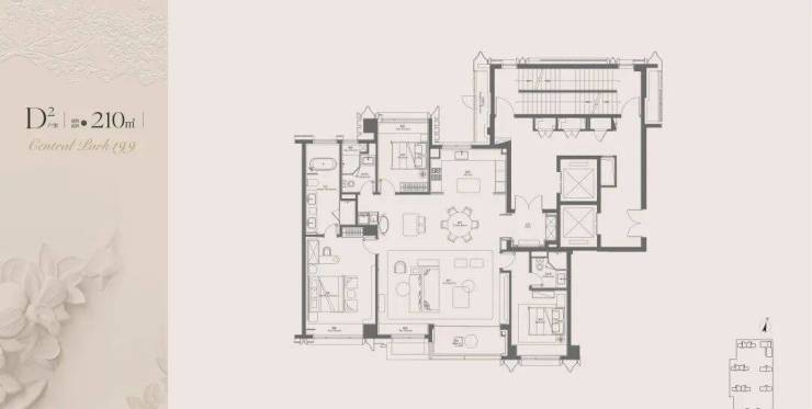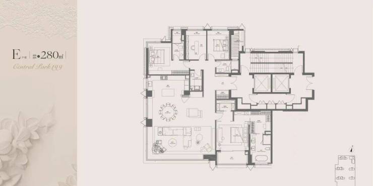 项目主力户型建面约 128-410㎡3-5 房,纯改善定位,精准匹配高端家庭需求: