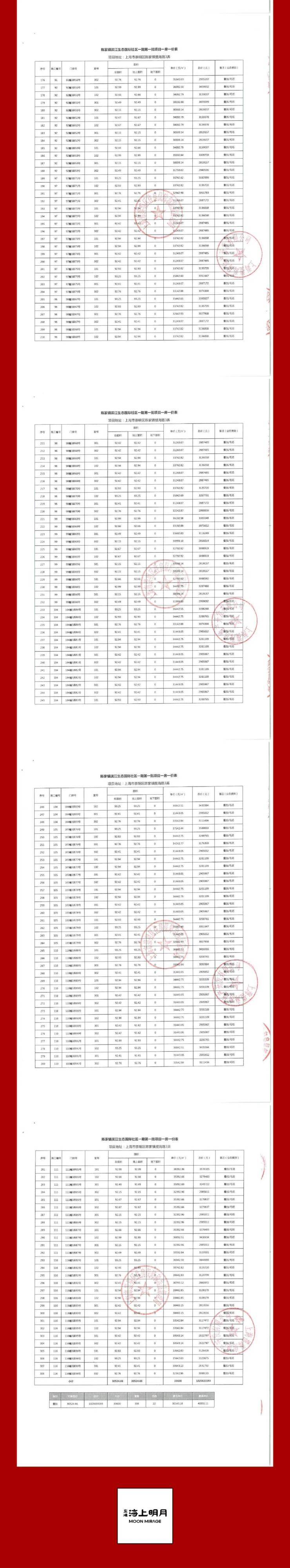 一房一价表公示: