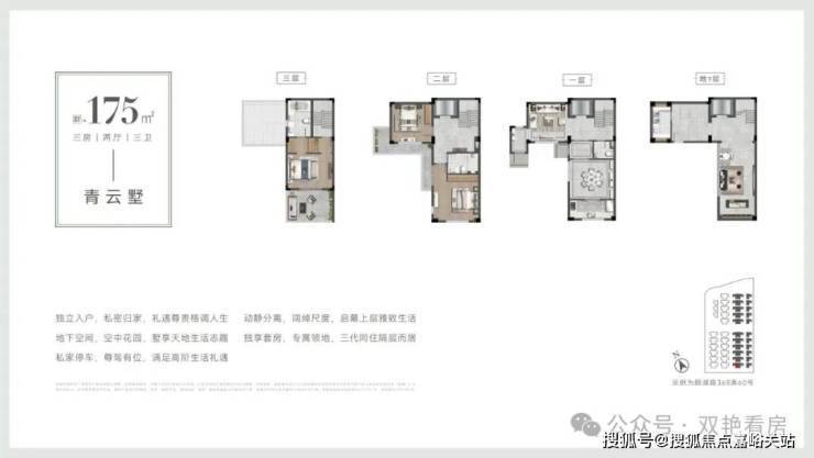 围合式合院,独立入户,三重院落有天有地有花园,人车分流,高窗墙比,窗窗见景,采光通风性佳