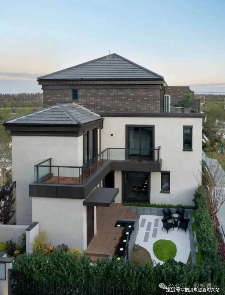 建筑外观上是新中式格调,以黑色面瓦为黛顶,整体线条简洁明快。