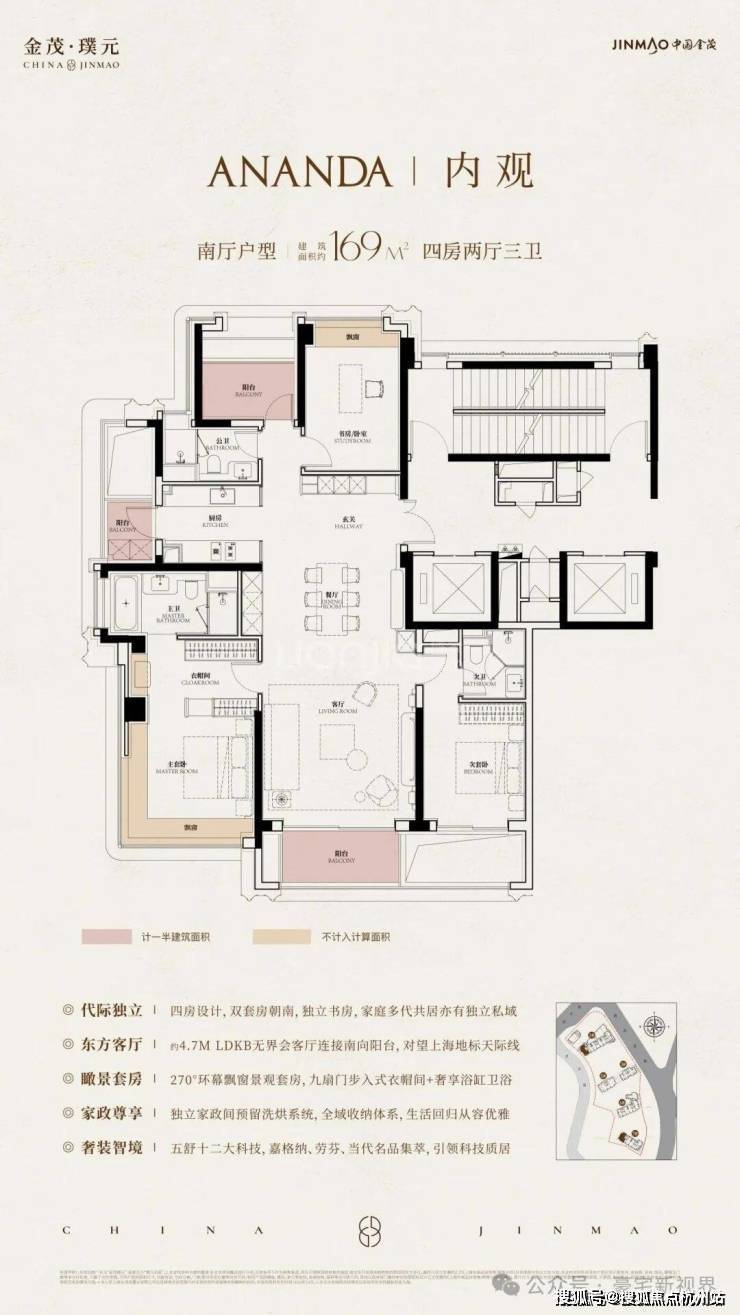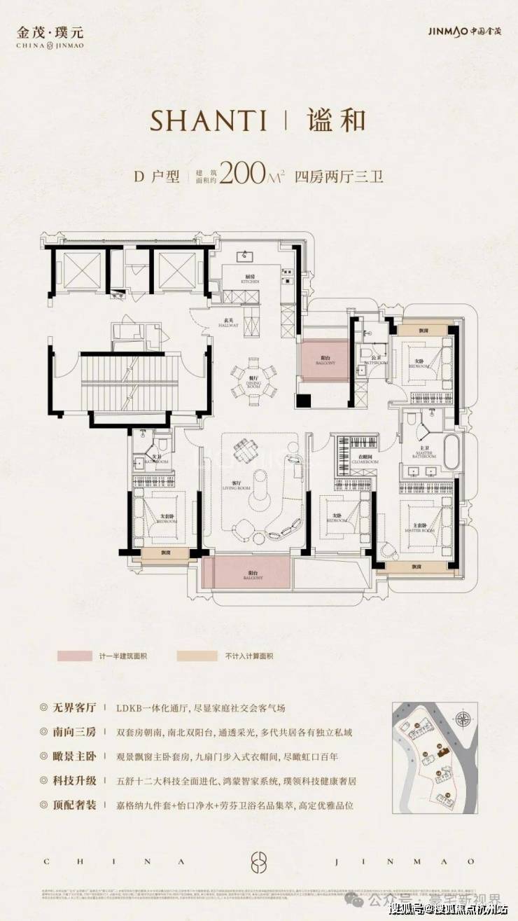科技住宅系统:项目最大的卖点是金茂的“五衡三智”科技系统,能实现室内恒温、恒湿、恒氧,提升居住舒适度。