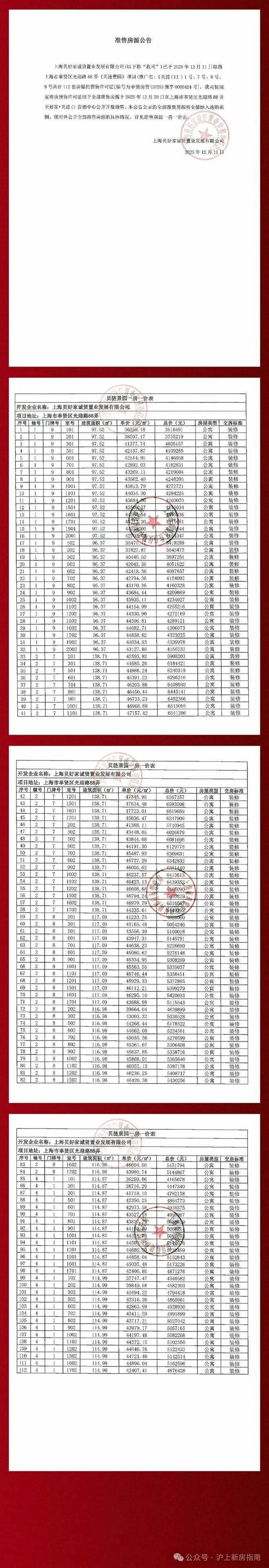 |占地面积: 约1.5万方 |计容建面: 约3.1万方 |可售户数: 256户(不含保障房) |产品类型: 建面约97-139㎡小高层 |开发公司: 上海贝好家诚贤置业发展有限公司 |物业公司: 贝望物业管理有限公司