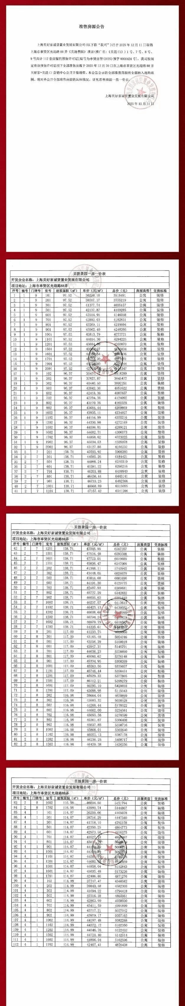 贝涟C1一房一价表: