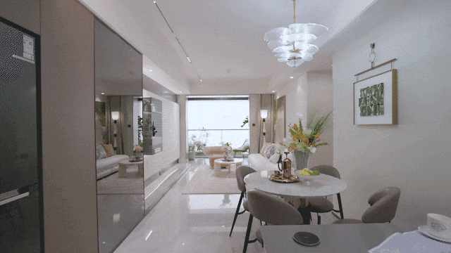 ⤴️ 绿城春晓园售楼处热线☎️☎️:400-9966-940✖️✖️如果觉得户型图没办法将空间概念展现出来,大家也可以看一下样板房的实景图。采用大面积玄关柜结合S墙及灰镜,释放空间提高使用率。