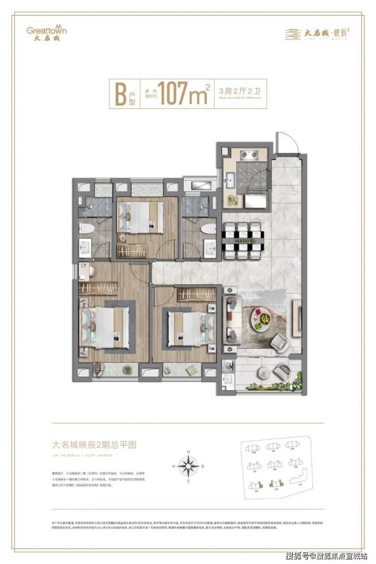 「大名城·映辰」二期在产品的打造上别具匠心。项目由双股上市房企 、2023年房地产上市公司综合实力50强——【大名城】匠心打造,传承“紫金系”精工品质,在深刻洞察时代青年的居住需求后,二期新品在一期的基础上,进行多维度的升级,敬献亲水活力社区。