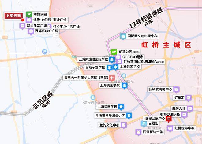 周边更有西郊乐缤纷广场、虹桥宝龙生活广场、朋联国际购物中心、新尚生活广场、青浦光明荟等近40万方超大体量的商业配套。