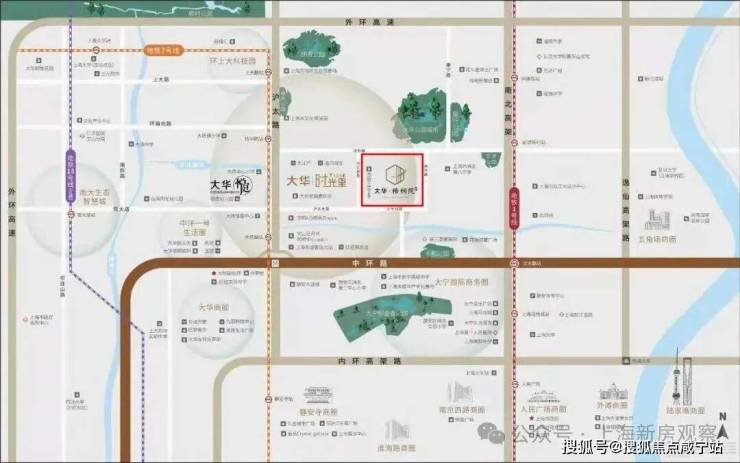 该项目位于宝山区大场板块,地处界华路和场中路交界处,靠近大华老镇嘉年华,旁边就是地铁7号线场中路站。