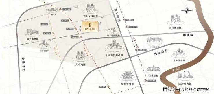 项目距离7号线场中路站直线距离约700米,在步行快速可达的范围内。自驾方面,项目与中环直线距离仅约1.4公里,与南北高架直线距离约2.5公里,出行非常方便。