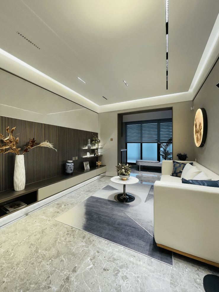 项目景观依照“一环、两轴、四片区”景观结构,以景观延续建筑简洁现代风格,营造现代雅致的景观效果。依据项目地块属性,对景观空间进行合理布局,从宏观到微观始终关注使用者的需求,营造层次丰富、步移景异的社区居住空间。