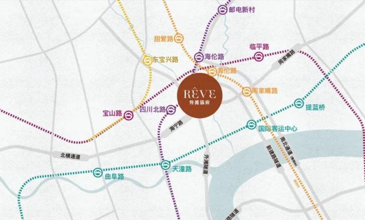 4条轨交:10、3、4号线、19号线(在建中),10号线四川北路站直线距离约300米、4号线/10号线/19号线(在建中)海伦路站直线距离约350米、3号线东宝兴路站直线距离约900米