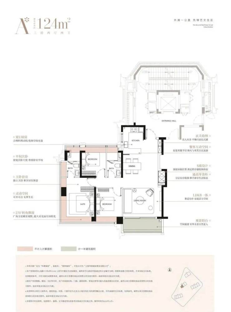 建面约124㎡经典的三房布局,高效满足主流家庭的居住需求,每一房间均设计有观景飘窗,让外滩的天际线成为日常生活的背景。创新的S墙设计与南向次卧“可开可合”的灵活隔断,在有限面积内实现了功能与美感的精妙平衡。
