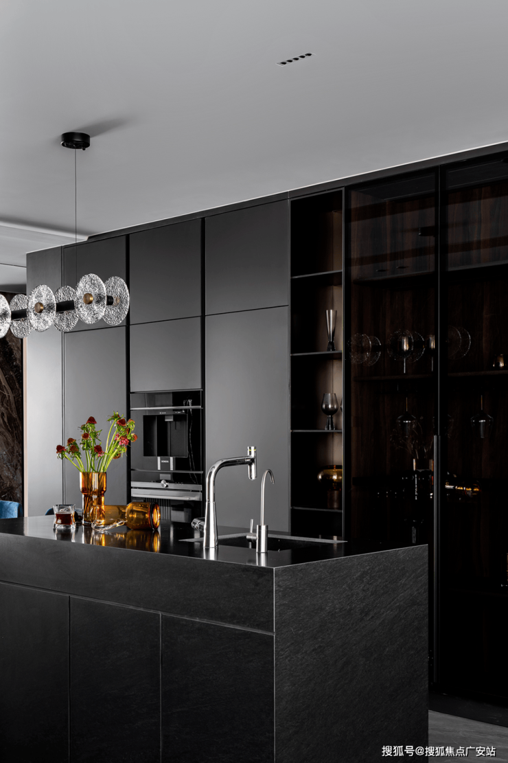 Kitchen: U-shaped circulation design, high-end kitchen appliance brand, humanized design (double glass sliding doors, integrated dining, kitchen and floor, no blind spots for hygiene in the future)