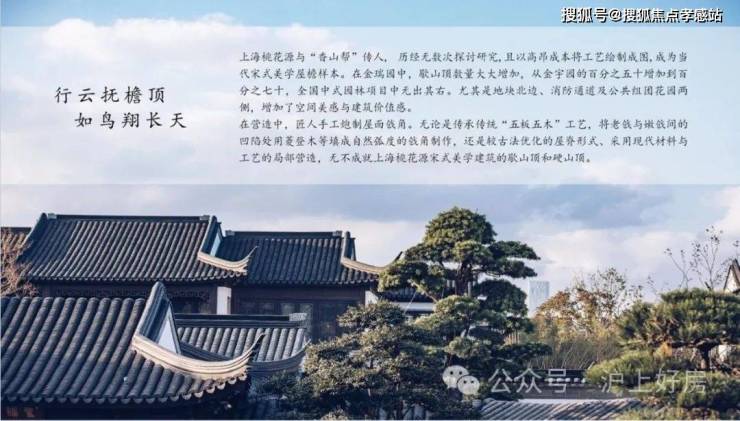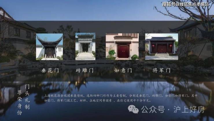 在建筑营造上,🏫 上海桃花源售楼处热线☎️☎️:400-9966-940✔✔于明清建筑之上,融入宋代建筑风格,出檐宽广,檐下增加斗拱、镂空雕花、甘蔗脊竖、阑额等元素,雅贵造极。同时约2/3宅园设置入户连廊,为全国之最。