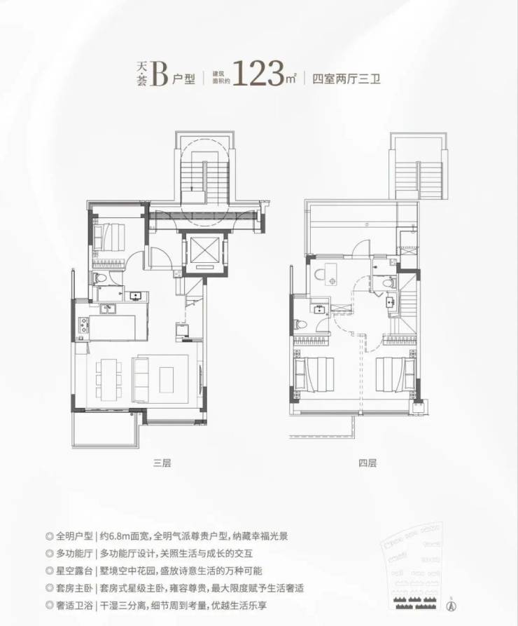 当然项目建面约115-133㎡叠墅都实现了4房功能性,无疑是适配二胎家庭的终极改善产品!