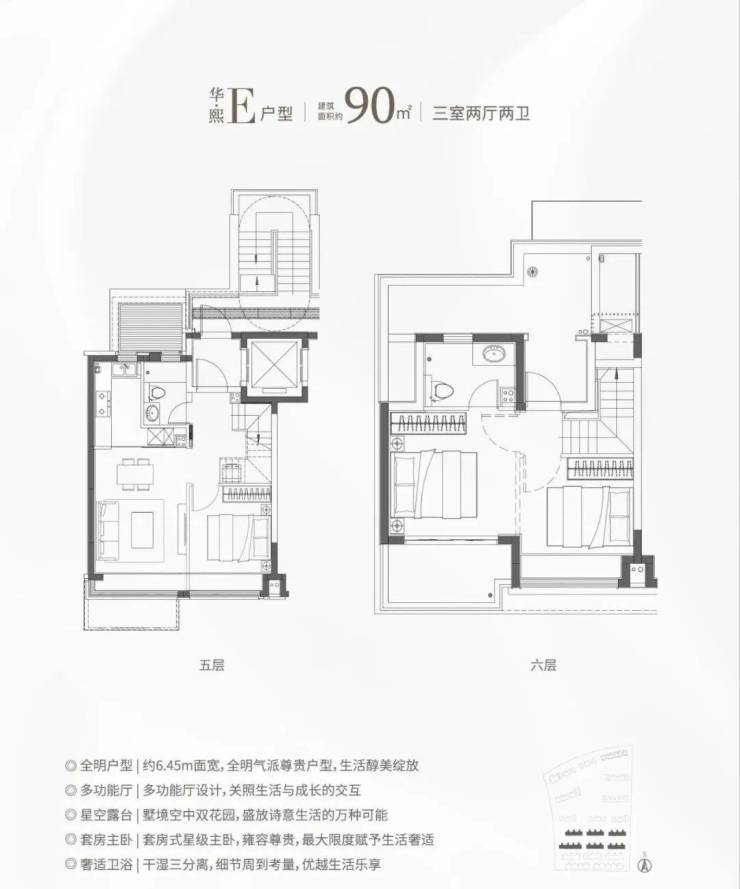 1建面约99㎡3房2卫&建面约90-133㎡叠墅