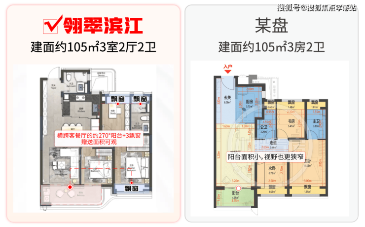 另外一方面,整个阳台拥有约270°的景观面,视野和采光都非常出众。