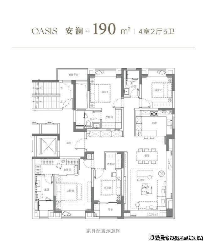 建面约296.58㎡:大平层,三面采光,主卧套房设计