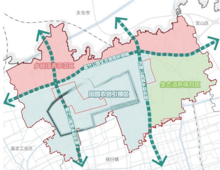 三片建构——三片分别为乡居康养示范区、田园农创引领区、生态涵养先行区。
