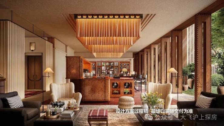 会所由全球顶奢酒店设计领域的标杆——CCD香港郑中设计事务所执笔。目前看到的效果图,体现出一股醇正的老钱世家风,设计品位远超市场同类豪宅。
