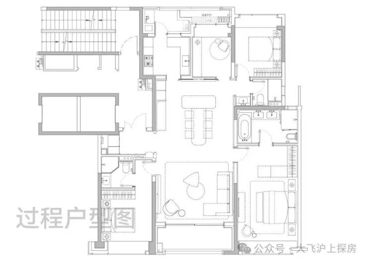 主卧大套房设计带超大主卫和衣帽间,面积约50㎡,尺度感与市面上近300㎡的顶豪拉平。