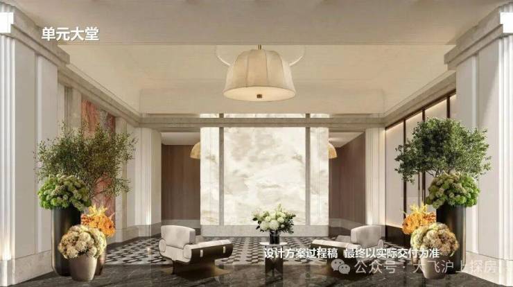 公区方面,从归家社区大堂、大堂序厅、以及入户单元大堂一路看过来,体现出一套脉络完整,层层递进的海派顶奢设计语言。
