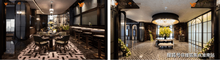 同时,酒店式入户大堂溯源海派经典,融入古铜色金属格栅、海派拼花(首层和地下大堂)、海派复古压花玻璃等海派表达,让人文感满满。