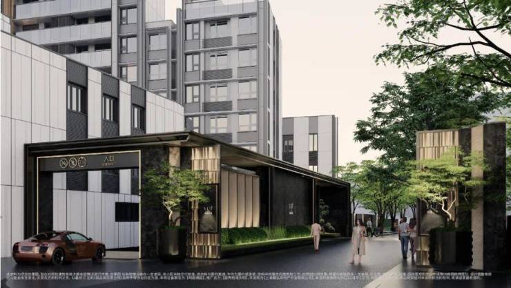 为了营造归家的仪式感,越秀·杨浦天玥打造了宽约35米、高约5.1米酒店式奢阔门头,引入了价值不斐的名贵黑松。