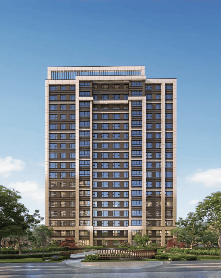 产品力,是高端住宅的核心竞争力。静安玺樾总占地面积约 31352.4㎡,总建筑面积约 152702.85㎡,规划 7 栋 17-33 层高层住宅,共计 926 户,车位 1130 个,车位比约 1:1.2,完全满足业主停车需求。项目采用新海派建筑风格,以石材、真石漆、铝板构建三段式经典立面,横向铝板线条搭配通透玻璃,还原摩登海派质感,典雅大气又不失时尚感,极具辨识度。