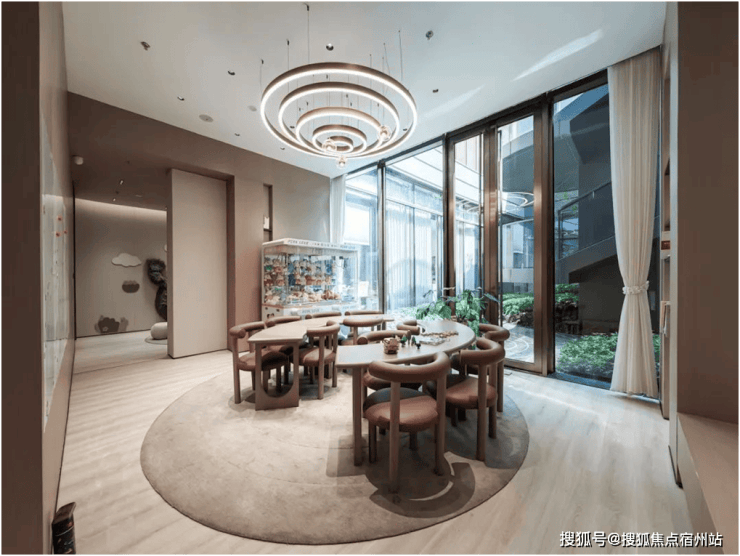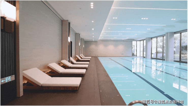 在下沉式景观庭院两侧,是不同的邻里空间。一侧是社区邻里中心,涵盖恒温泳池以及宽阔的健身房空间。当业主锻炼时,不被空间局限。透过落地窗,可以一边挥洒汗水,一边尽情欣赏庭院中的美景。
