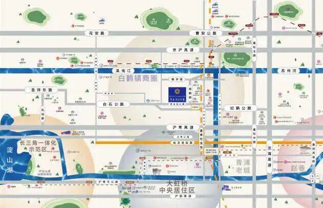 <轨交出行>根据规划,轨道交通市域线嘉青松金线将设置白鹤站,预计于“十五五”期间(2026-2030年)开工建设,将强化白鹤与大虹桥、青浦新城安亭之间的互动联系。未来可于青浦新城换乘17号线、沪苏嘉城际铁路上海示范区线,于安亭换乘11号线、14号线西延伸线。<高速出行>G1503上海绕城高速,距离项目直线距离约1.4公里,畅达无忧,悦享高效出行;S26沪常高速,直衔虹桥枢纽; 崧泽高架,东联虹桥商务区,西联长三角一体化示范区青浦新城;京沪高速,连接闵行、嘉定,直抵市区中芯。