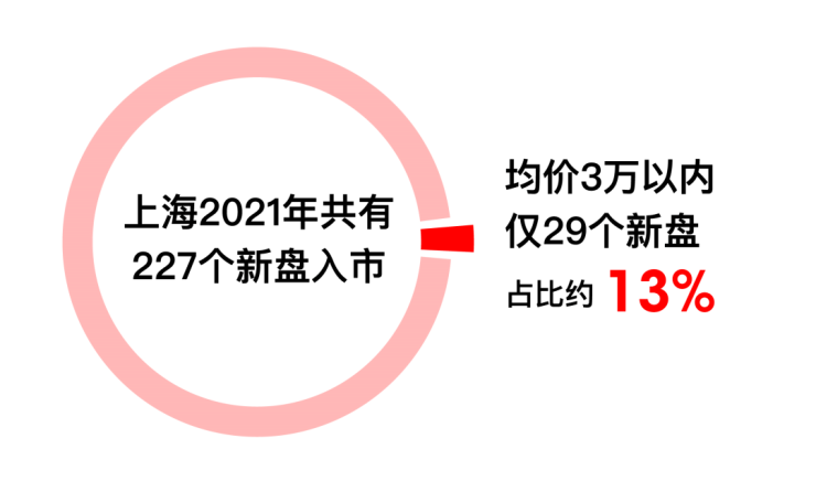 纵观整个上海,2021年共227个项目入市,均价在3万内的仅有29盘,占比不足13%,这其中,金山区就占了约55%。