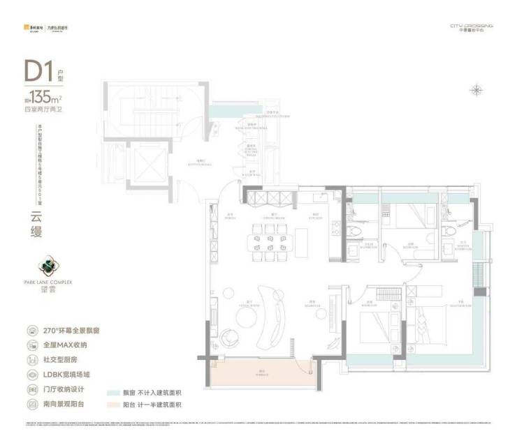 值得一提的是,建面约135㎡户型的实际使用率相当可观,据相关机构测算使用率高达约91%!