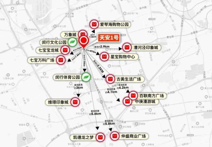 商业方面,周边有万象城、爱琴海购物广场、七宝万科城市广场、凯德龙之梦、南方商城、中庚漫游城等繁盛商场。