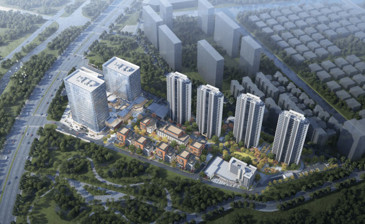 这7栋低层应该不是住宅。因为从之前的彩平图来看,4栋高层和北侧的低层建筑,地面铺装有明显不同。在综合技术经济指标中,显示还有“花园办公”,大概率说的就是这几栋商墅。另外,地面上还有十几个停车位,非人车分流。