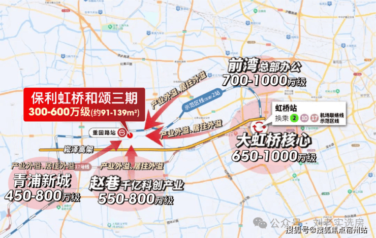 由此可见, 示范区线沿线连接着华为、前湾、大虹桥、临空、中山公园、市中心、张江、华泾等一众超强产业区。保利虹桥和颂三期凭借地铁房的优势及价格红利,必将成为这些产业区人才置业的热门之选。