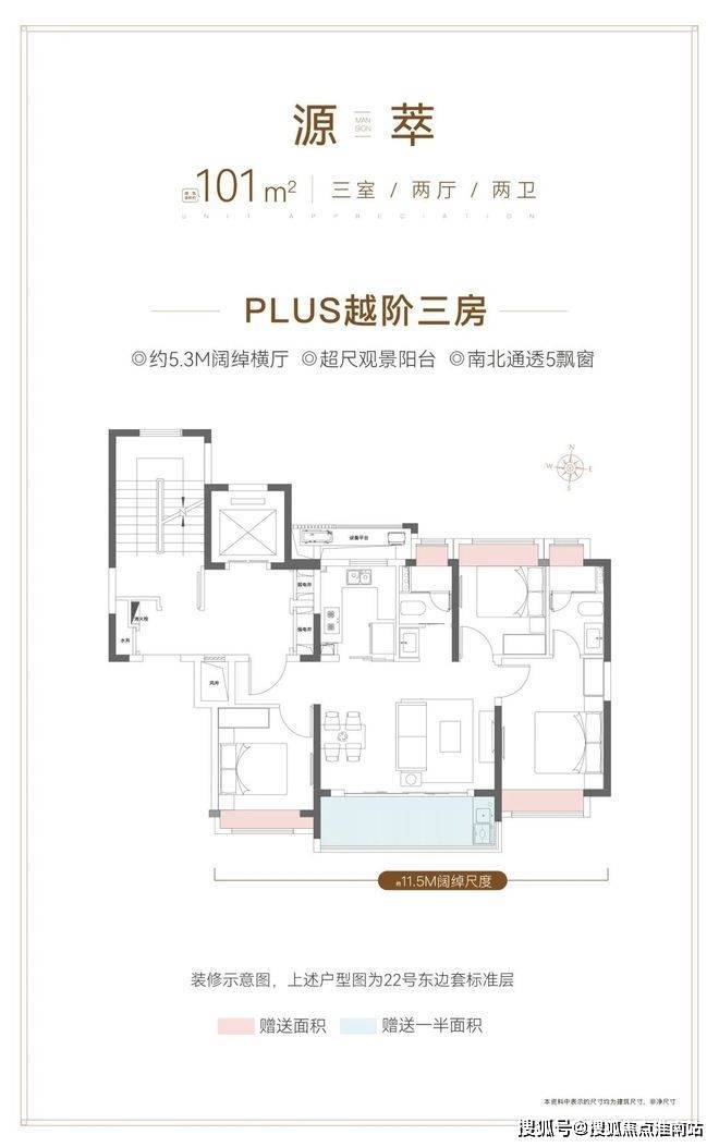 建面约101㎡3房2卫户型,非常标准的飞机户型。