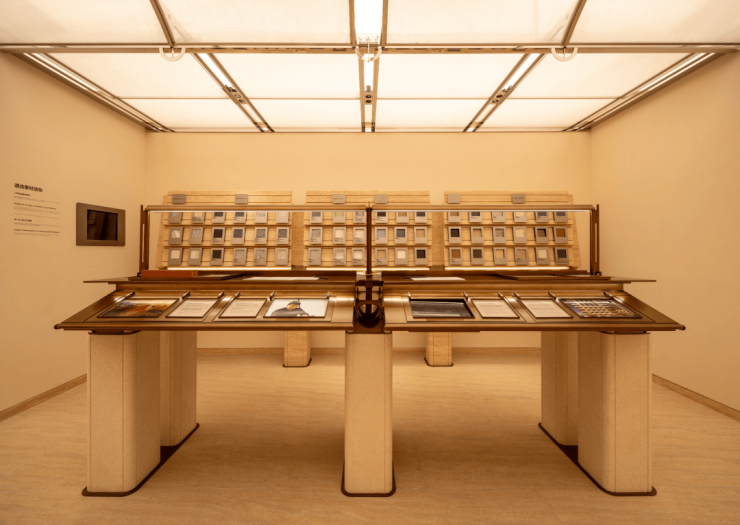 皇家白奢石、Prada绿皮革面奢石、砖纹定制铝板... 细节中透露出精致与考究。工艺工法间对72种奢材的展示,让人心悦诚服。