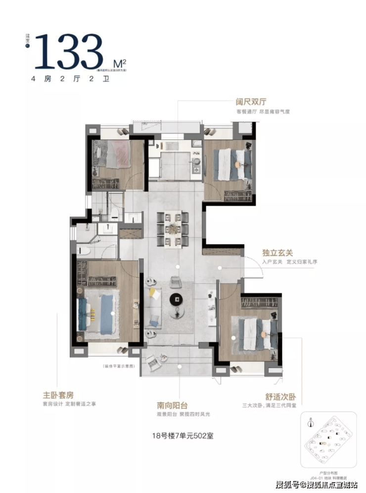 4.套房式主卧 | 独立卫浴间,预留衣帽间空间;