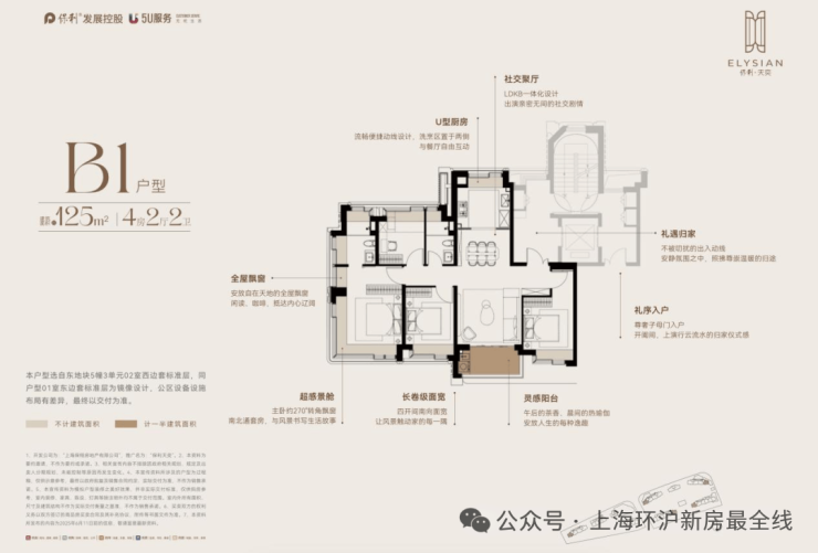 建面约125m²,约1000万起即可上车更舒适的边套四房!