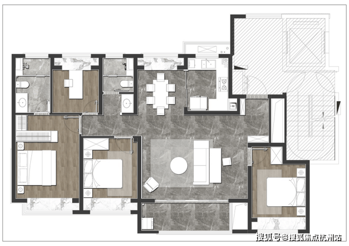 整体规划层数南低北高,北侧沿街布置商业,形成国际住区合理化布局,提供居民生活的便利性和品质感;中轴对称的景观大花园布局,融合简约现代的立面风格,兼具实用性于美观性,让森系生活的景观价值最大化。