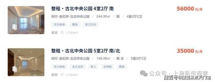 从网上挂牌价格看,古北的大户型房源月租金基本都在35000-55000之间,项目一路之隔的【古北中央公园】,挂牌价格在13-14w左右,161平米的三房,月租金3.8万,可以说投资回报率相当高,而且租客多为驻沪领馆外事人员、外企高管、国际学校陪读家长等,圈层较高且稳定。