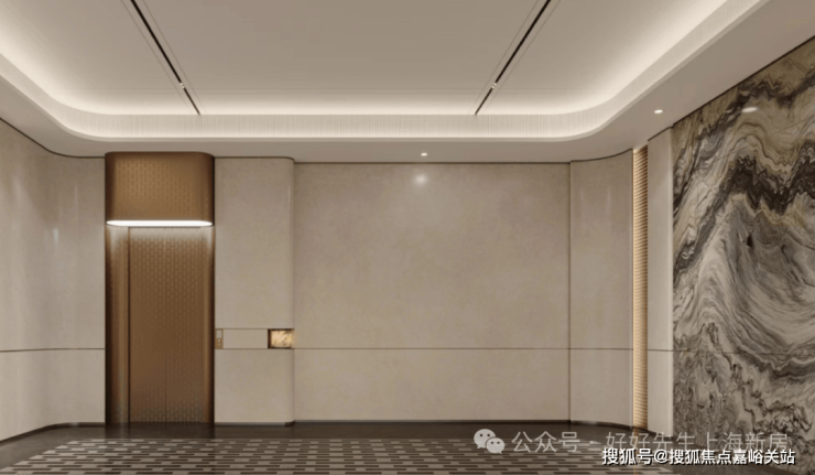 入户门厅以弧形悬浮顶棚为特色,为业主带来柔和温润的归家关怀,让归家的每一步都充满舒适与惬意。