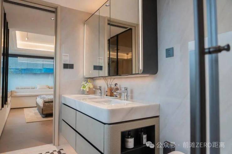 比如说,卫生间的镜柜设计,内设三宫格镜柜收纳: