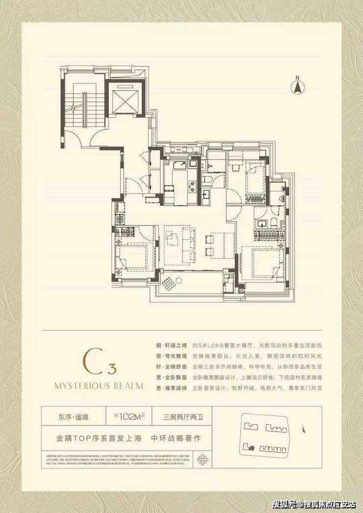 102㎡户型将实用性做到极致,类一梯一户设计增加了实用面积,并且拥有罕见的3.5开间朝南+约5米大面宽客厅,要比大多数同面积段产品体验感更强。