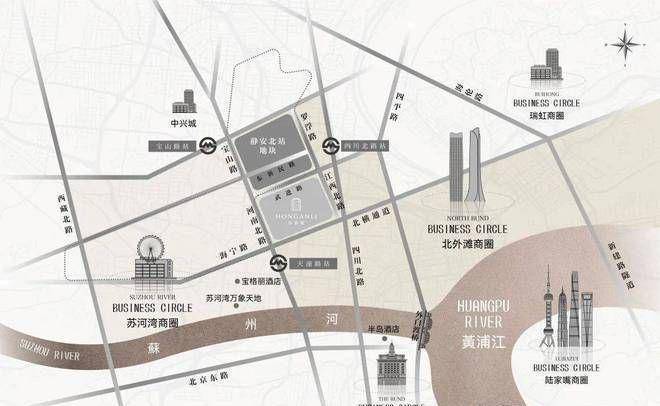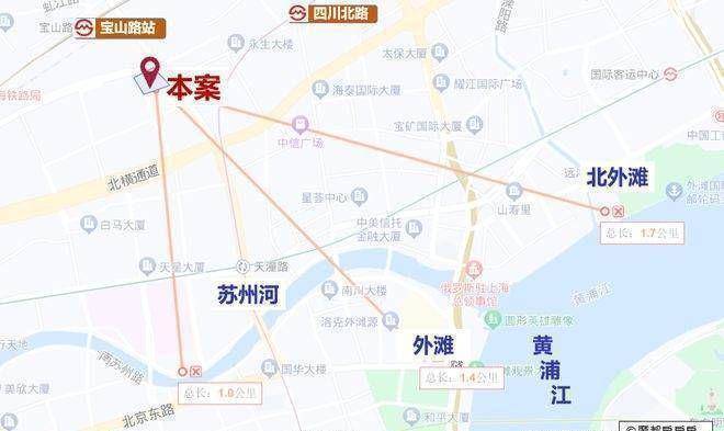 仅从图上看,该地块直线距苏州河约1公里,直线距外滩约1.4公里,直线距北外滩约1.7公里,直线距3/4号线宝山路站约300米,直线距10号线四川北路站约560米,区位优势明显。