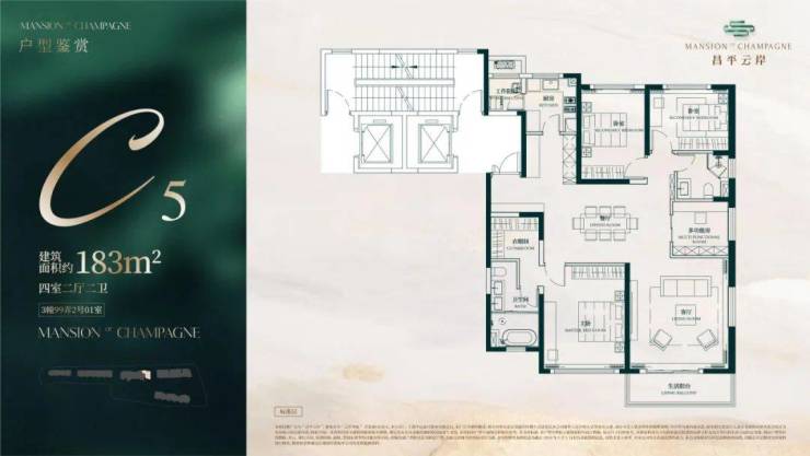 建面约183㎡4房2厅2卫户型